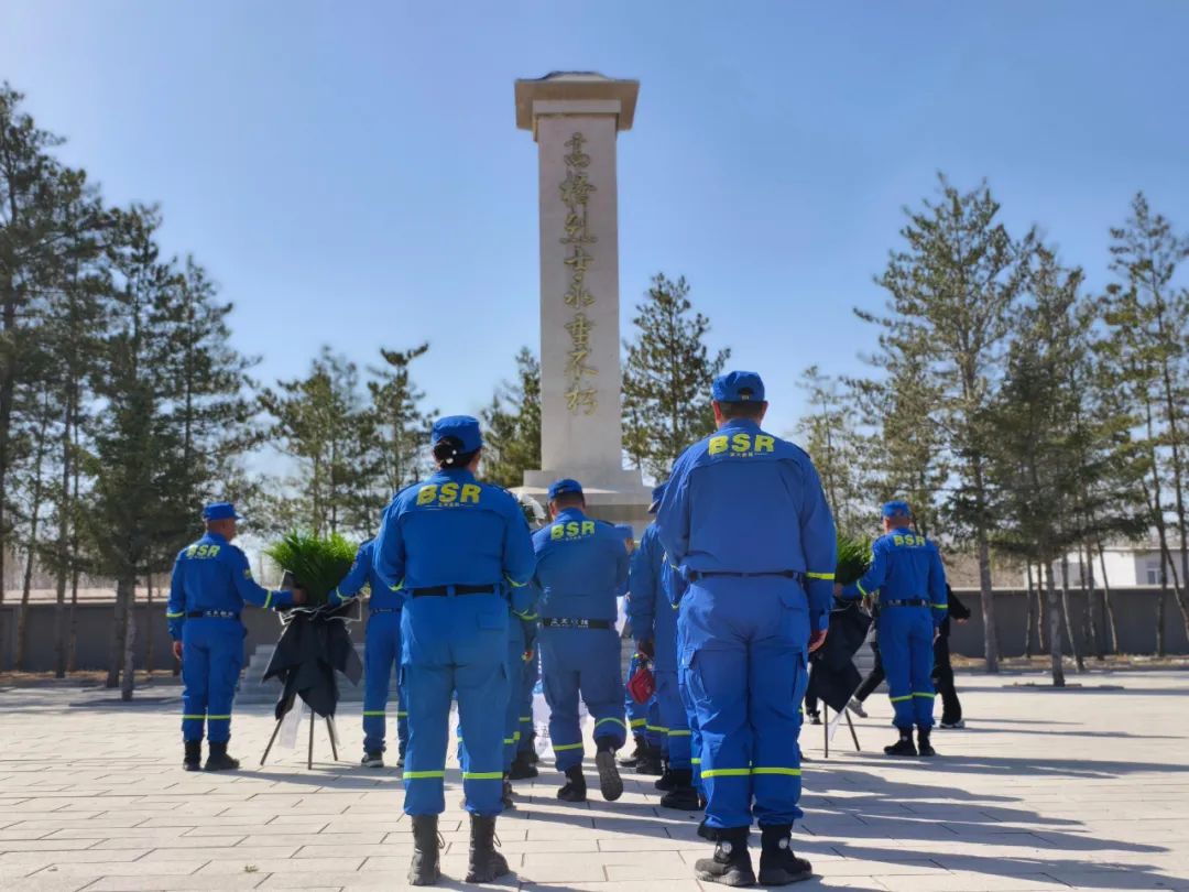 祭扫尾声,队员们自发列队绕碑缓步行走,依次敬献手中的菊花。洁白的花瓣映衬着队徽,象征着救援事业与烈士精神的血脉相连。正如队员在朋友圈所写:“今天,我们既是追思者,也是守护者。山河无恙,是对英雄最好的告慰;人民安康,是我们永恒的追求。”