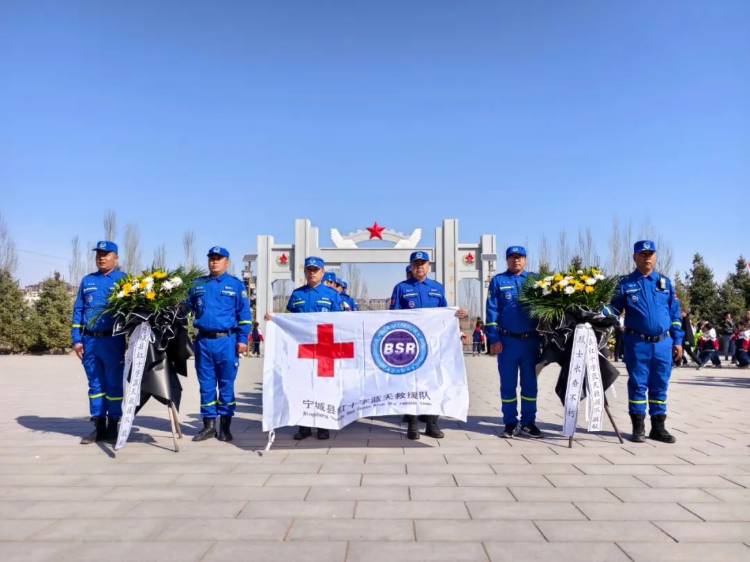 4月3日上午,宁城县红十字蓝天救援队全体队员身着队服,携带菊花与队旗,来到高桥烈士陵园,以庄严的仪式缅怀革命先烈,致敬英雄忠魂。他们用行动诠释“人道、博爱、奉献”的初心,让救援精神与烈士精神薪火相传。