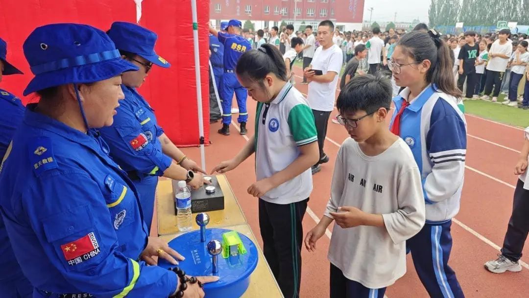 防溺水体验区尤为引人关注。队员们借助道具模拟危险水域,详细讲解溺水的危害及正确施救方法,让学生明白盲目施救可能带来的风险。许多同学表示,“以后遇到有人落水,一定要找大人帮忙,而不是自己贸然下水。”