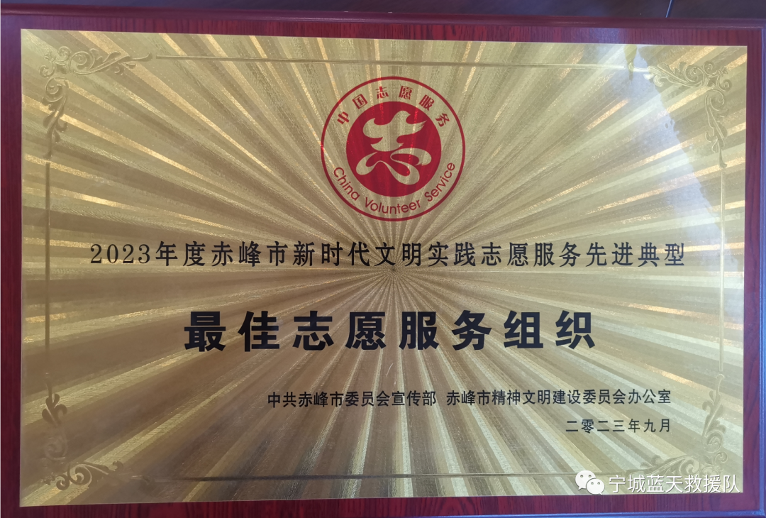 喜报-宁城县红十字蓝天救援队荣获最佳志愿服务组织